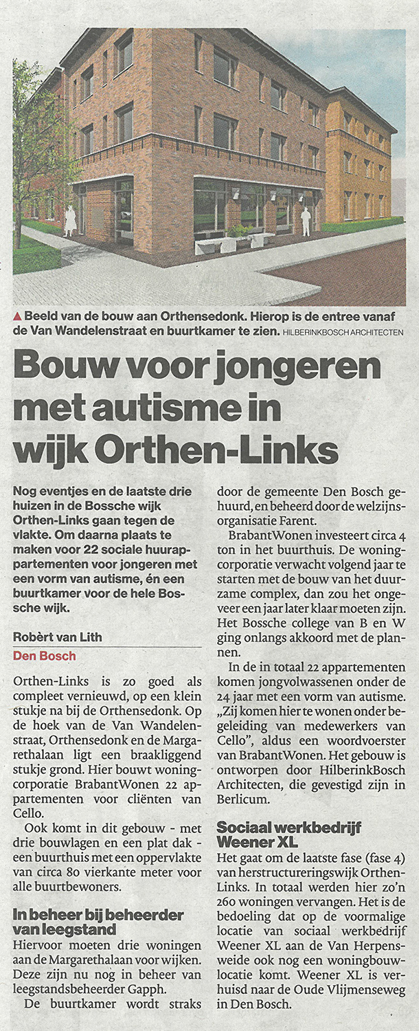 Orthen-Links gaat de laatste fase in. Het sluitstuk van de vernieuwde wijk is zowel Buurtkamer als Zorggebouw. Met het sociale slotgebouw sluiten we de succesvolle transformatie van het oude Orthen-Links naar het nieuwe Orthen-Links af.