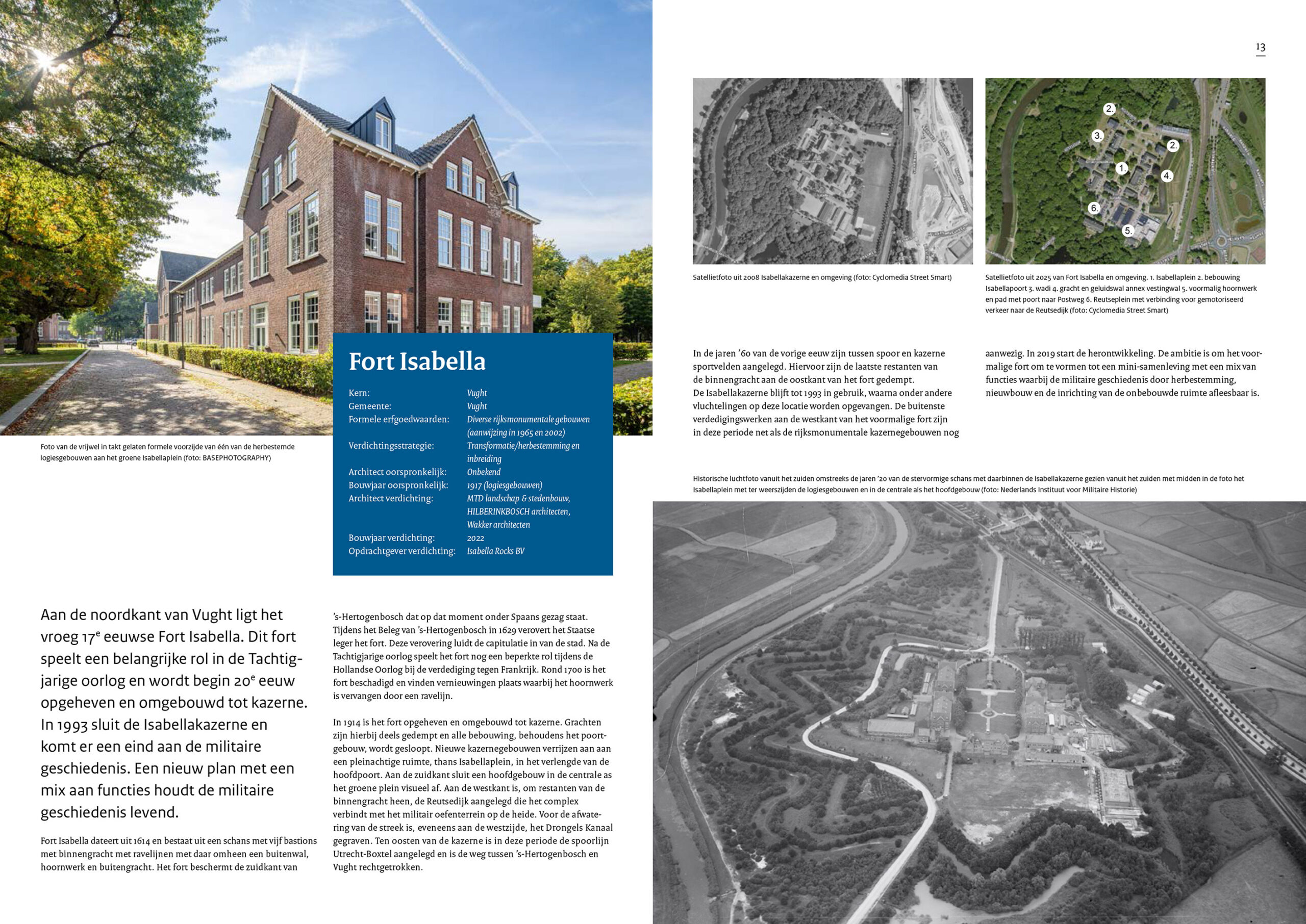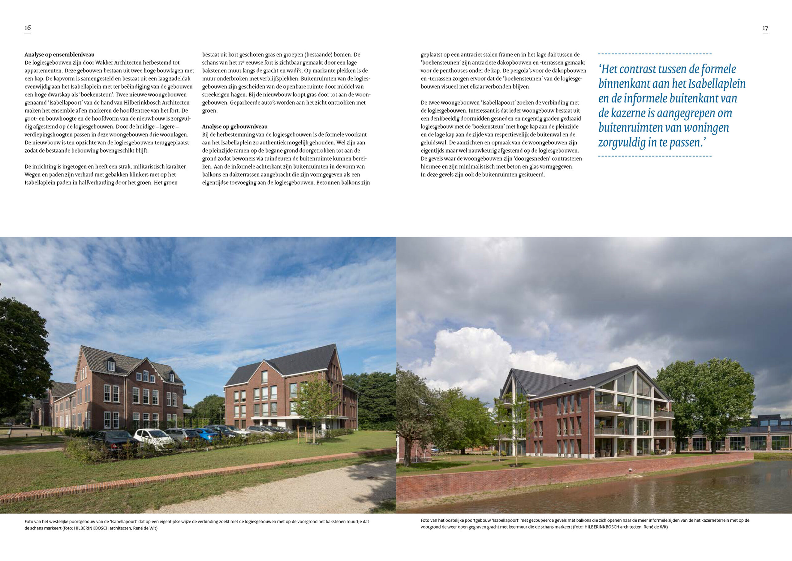 ‘Erfgoedinclusief verdichten is het toevoegen van woningen waarbij aanwezige cultuurhistorische waarden en ruimtelijke kenmerken als vertrekpunt worden genomen en men daarop voorbouwt.’ We zijn verheugd dat Fort Isabella, dat in grote zorgvuldigheid is getransformeerd, ter inspiratie en als voorbeeld wordt besproken. Het team bestaat uit MTD landschap & stedenbouw, HILBERINKBOSCH architecten en Wakker architecten. De realisaties van HILBERINKBOSCH betreft drie appartementencomplexen, waarvan twee verwante complexen die samen Isabellapoort heten hier worden besproken.