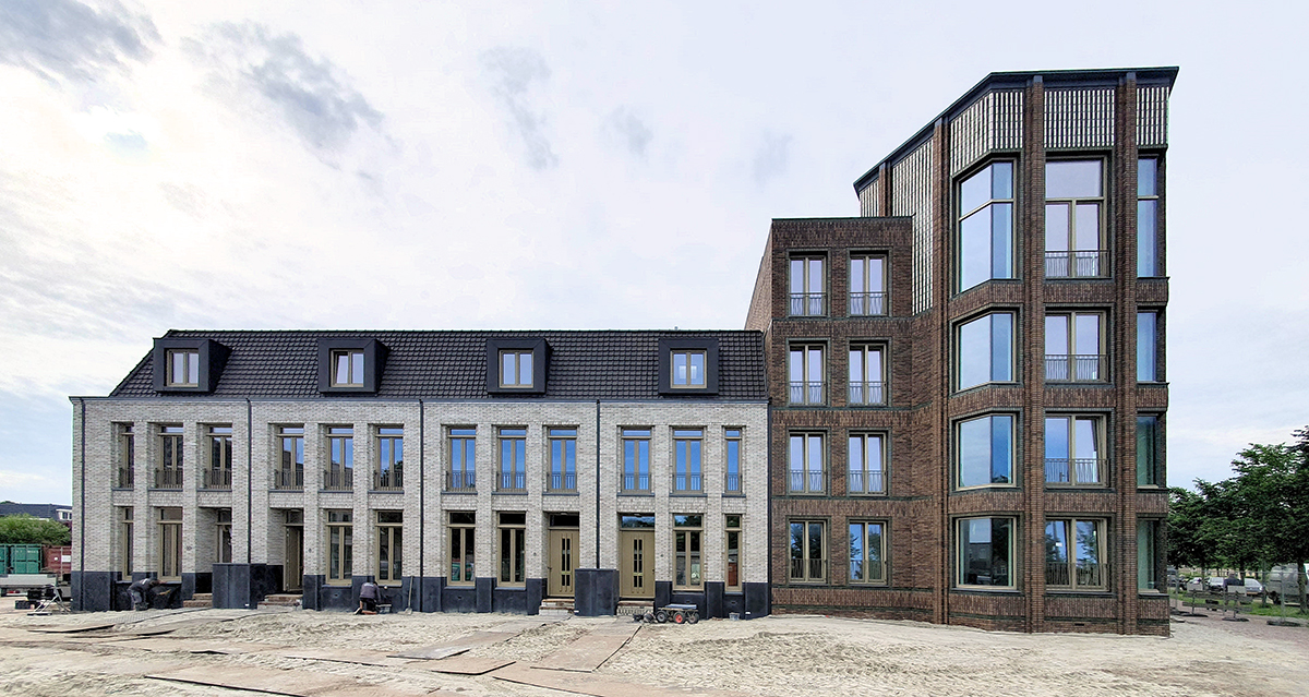 Vier grondgebonden eengezinswoningen worden volgende week opgeleverd. In september volgt de toren met zeven appartementen sociale huur, die deels in hoogwaardige groen geglazuurde stenen is gemetseld. Aan de voorzijde van de vier woningen komt een plantsoen.