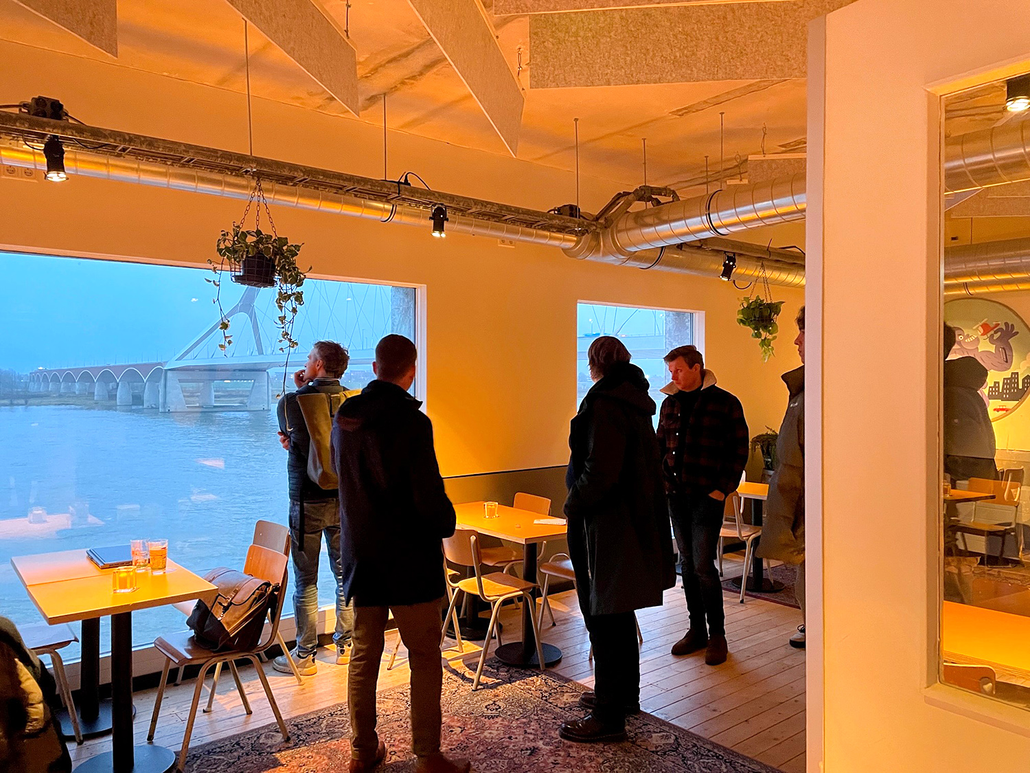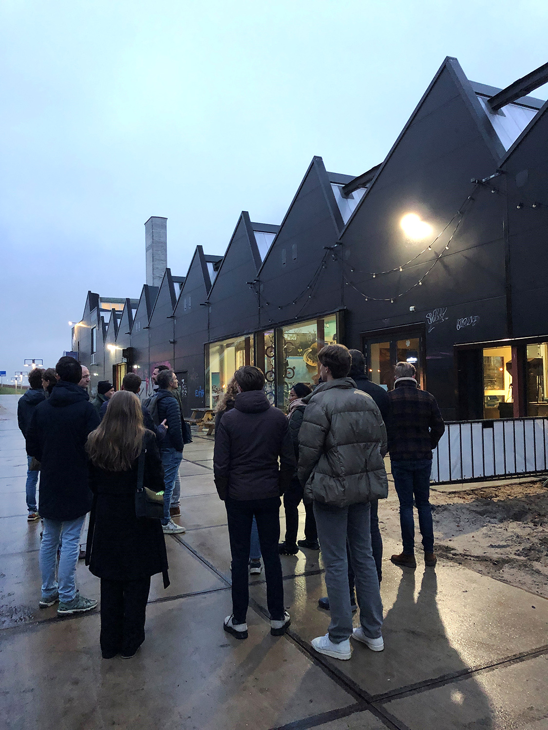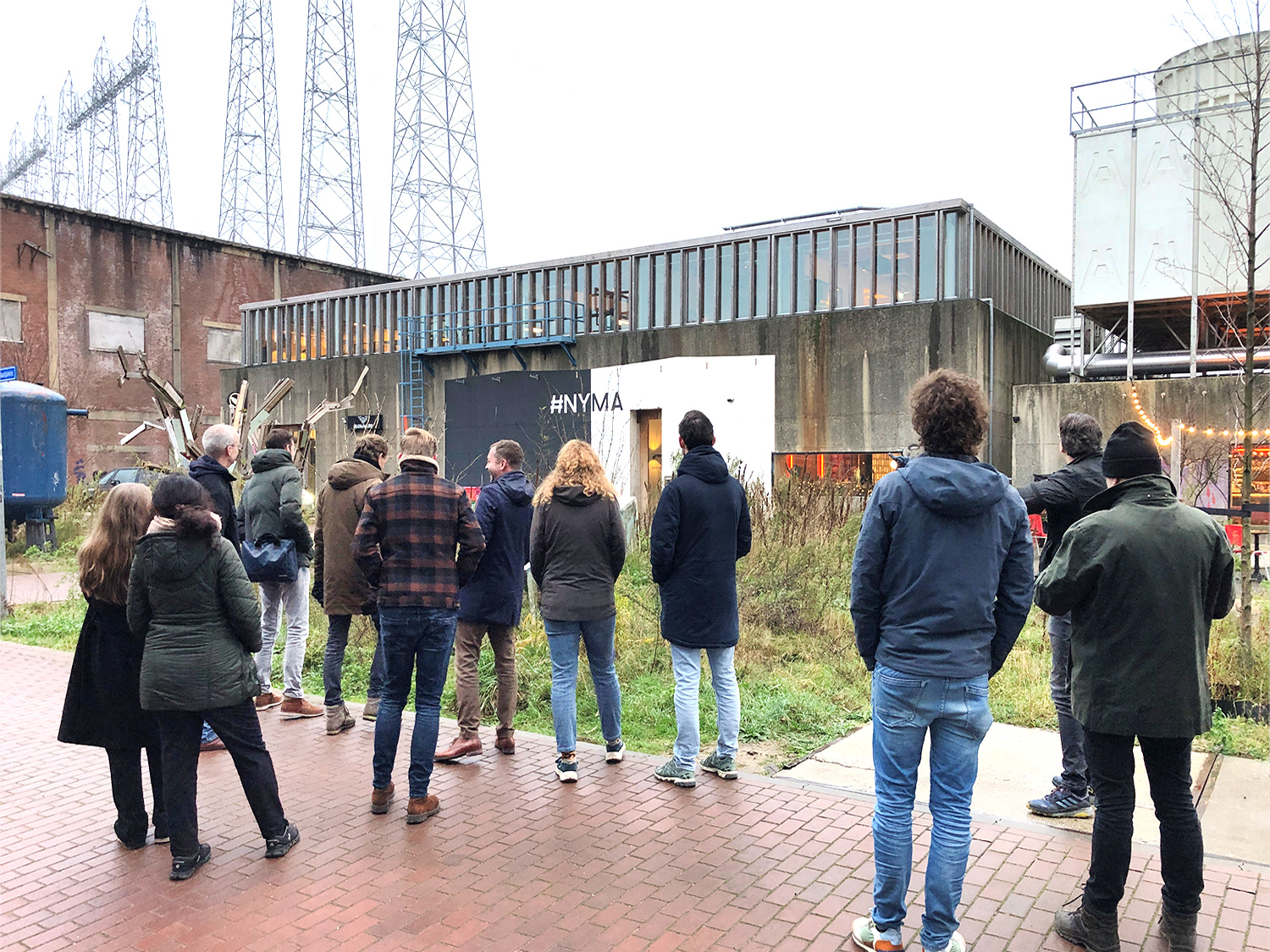 We gaan naar Boeijenjong Architecten op het NYMA-terrein waar Ward Boeijen en Koen Geraerdts een rondleiding geven. Koen heeft tegelijkertijd met Chris op de Academie van Bouwkunst in Arnhem gestudeerd, het was een vrolijk weerzien tussen de architecten. Kijk HIER op de webite van Boeijenjong.