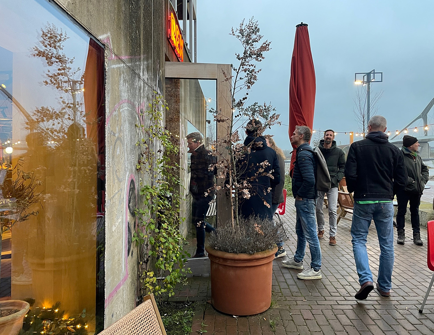 We gaan naar Boeijenjong Architecten op het NYMA-terrein waar Ward Boeijen en Koen Geraerdts een rondleiding geven. Koen heeft tegelijkertijd met Chris op de Academie van Bouwkunst in Arnhem gestudeerd, het was een vrolijk weerzien tussen de architecten. Kijk HIER op de webite van Boeijenjong.