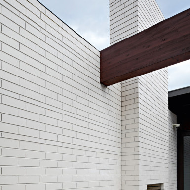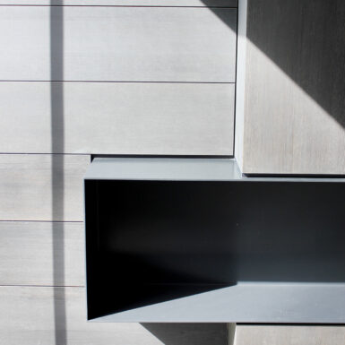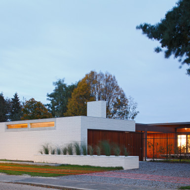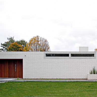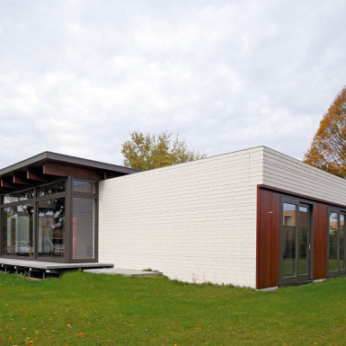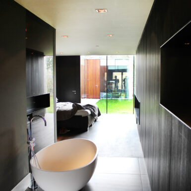 gevel tuinzijde – blik op verhoogde woonkamer en terras