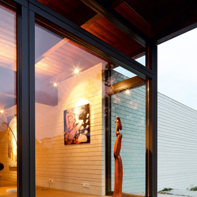 gevel tuinzijde - blik op verhoogde woonkamer en terras